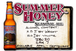 “It’s a full flavored, refreshing summer seasonal. This well-balanced brew has a unique blend of spices, which complement the European hops. The honey lightens up the body and helps to blend taste with aroma without making the beer too sweet.”