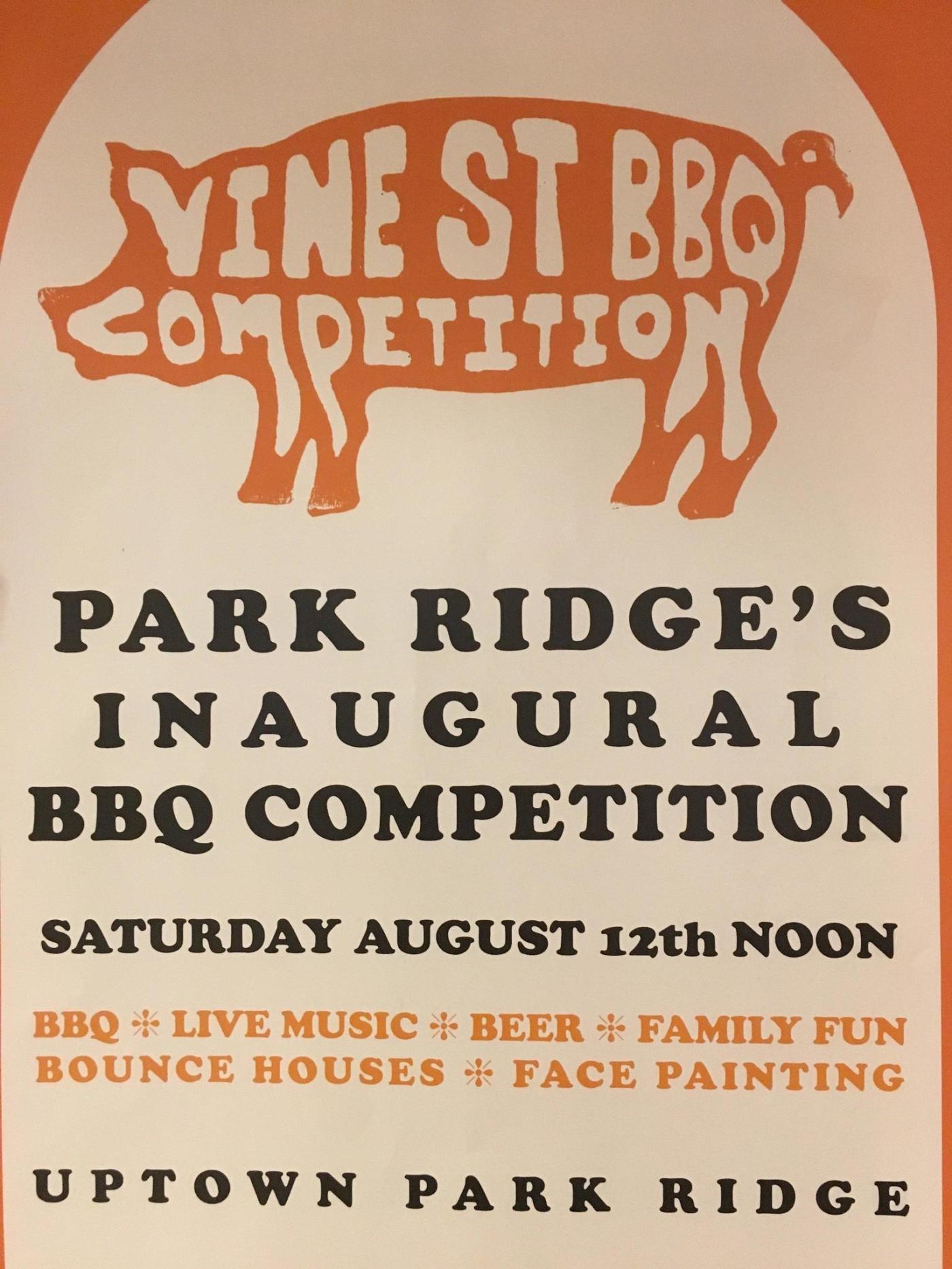 Park Ridge gets to add another notch to its ever growing event belt with its First Annual Vine Street BBQ Competition August 12, 12:00pm to 9:00pm at the corner of S. Prospect and S. Summit. This is Park Ridge’s first public grilling contest. Are you pumped? I am.